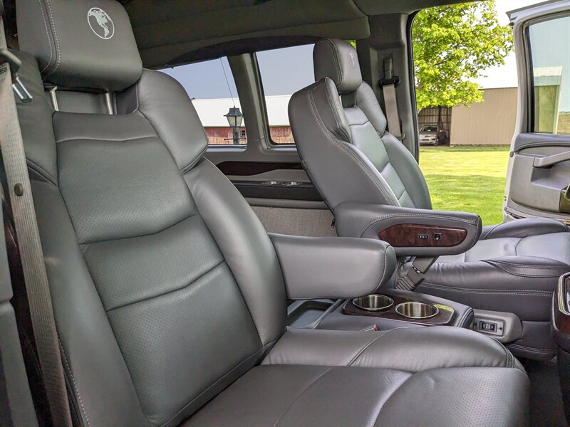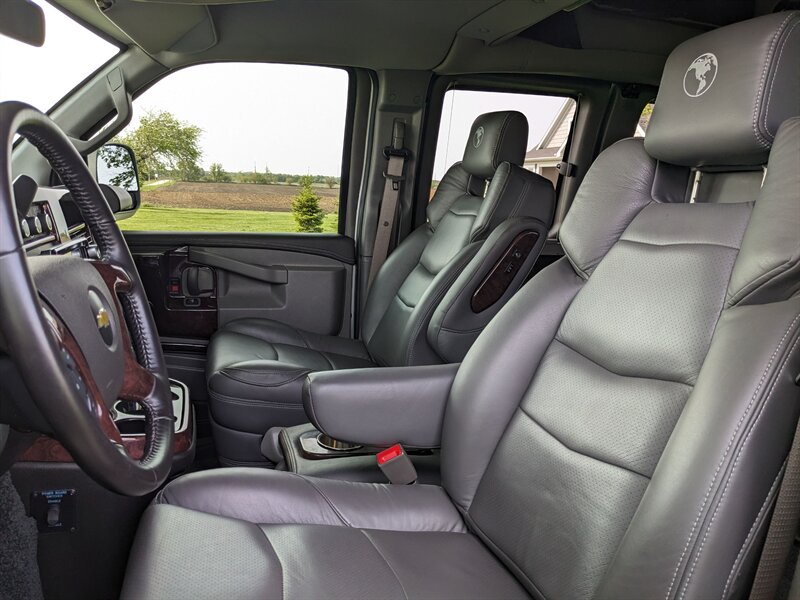Our 2021 Chevrolet Express 2500 Explorer Limited SE Conversion with Bruno Mobility Scooter/Chair Lift is ready to give freedom and flexibility to its next owner! Beautiful top notch Explorer conversion with heated leather front seats, lighting package, OnStar, beverage cooler, custom sound system, window coverings, power folding rear seat, and much more! Add the capability of the Chevy Express 2500 with 10,000lb towing capacity and you have quite a package! Seating for 5 with room to stand thanks to the high roof, the lift for a mobility device and still covered by the full factory warranty. Save thousands over new, without the wait!